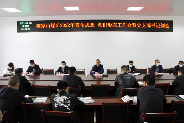 近日,陳家山礦召開2022年宣傳思想、意識形態(tài)工作會暨黨支部書記例會。通報了公司2021年第三輪黨支部標準化督導檢查、礦3月份黨支部標準化檢查及黨建綜合檢查,與會人員學習了公司2022年宣傳思想暨意識形態(tài)工作會、銅煤“四個一”文化品牌工程項目啟動會會議精神要求,安排了礦2022年宣傳思想、意識形態(tài),近期工會、紀委、信訪穩(wěn)定、治安保衛(wèi)等各項重點工作。
