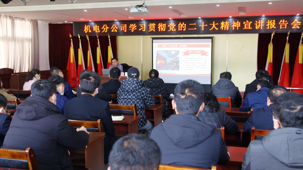“黨的二十大報(bào)告與大家有什么密切聯(lián)系?作為黨員干部如何去貫徹落實(shí)......”下午3點(diǎn)的機(jī)電分公司會議室,黨的二十大精神宣講報(bào)告正在進(jìn)行中,該公司黨委書記接連拋出問題,引得現(xiàn)場干部職工凝神傾聽。