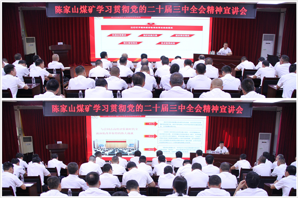 學思踐悟堅定信心,凝聚共識勇毅前行。連日來,陳家山礦舉辦學習貫徹黨的二十屆三中全會精神宣講會,旨在全面深入學習宣傳貫徹黨的二十屆三中全會精神,推動全礦廣大黨員干部深刻領會和把握進一步全面深化改革的主題主線、重大原則、重要舉措和根本保證,推動黨的二十屆三中全會精神落地生根、見行見效。