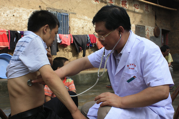 將近7點(diǎn)時(shí),終于走到了厙發(fā)學(xué)家里,顧不上休息,趙青瓊開(kāi)始為厙發(fā)學(xué)檢查身體。檢查中,趙青瓊發(fā)現(xiàn),厙發(fā)學(xué)是塵肺?、笃谥匕Y患者,已出現(xiàn)心臟衰竭和呼吸衰竭。看到愁容滿面的厙發(fā)學(xué),趙青瓊安慰他:“一定先按我說(shuō)的方案進(jìn)行治療,等你病情好轉(zhuǎn)后我會(huì)盡快安排你去醫(yī)院進(jìn)行治療。錢的事你就不用發(fā)愁了?!眳嚢l(fā)學(xué)看著趙青瓊,用力的點(diǎn)了點(diǎn)頭。短暫的體檢與交流后,趙青瓊和同事們便趕緊往回衛(wèi)生院的路上趕,8點(diǎn)之后,他們還有大量的工作要做?;貋?lái)的路上,趙青瓊一直拖著那只壞了的涼鞋艱難趕路,但想到厙發(fā)學(xué)不久將能進(jìn)入中央財(cái)政撥款首批被救助的名單里,覺(jué)得爛著腳走完這20多里的山路值了!趁著途中休息,他發(fā)了一條微博:“天剛亮雨就停了,旬陽(yáng)的山更綠了,又可以體檢更多的患者,好像老天爺也在獻(xiàn)愛(ài)心?!?/p>