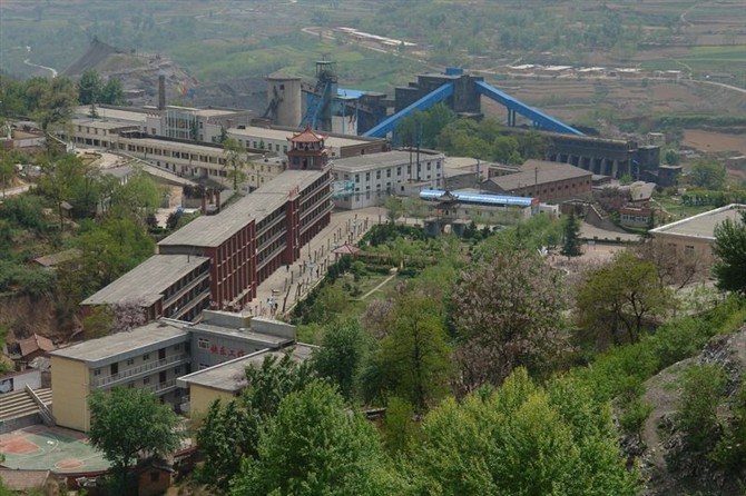 從“山上”俯瞰王石凹“山下”,可以看到“大樓”、選煤樓。那個(gè)黑色選煤樓前面的紅磚房子就是機(jī)電區(qū)翻砂組舊址上建設(shè)的,那里原先有平房,有院落,有我們的房子——木模倉(cāng)庫(kù),有我們父子開墾的“梯田”……現(xiàn)在痕跡全無 (攝影:韋夢(mèng)龍)