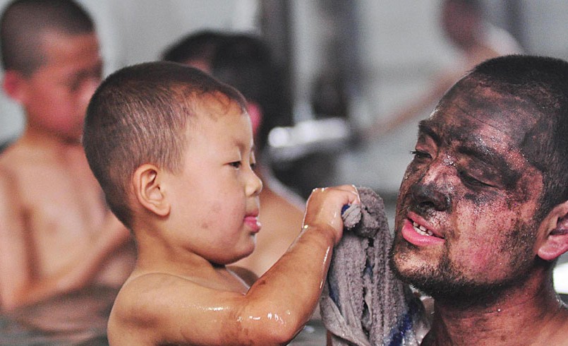 我曾經(jīng)問(wèn)過(guò)父親,下井是做什么呢?父親說(shuō),去挖煤??伤髞?lái)又想了想,用輕松的語(yǔ)氣說(shuō),地下有許多的寶藏,等著我們?nèi)ラ_(kāi)采。也許正是這樣的一個(gè)有些抒情的回答,讓我曾天真地以為,父親的工作就像尋寶一樣輕松。直到有一天,我在醫(yī)院門(mén)口玩耍,突然來(lái)了許多的人,緊接著便是救護(hù)車(chē)、擔(dān)架什么的,現(xiàn)場(chǎng)一片混亂。我在人群中隱約地看到一位像父親一樣穿著黑色工作服,帶著鋼盔帽的人,鮮血滴在通往醫(yī)院的路上,其間還伴著散落的煤灰。我瘋了似地跑回家,當(dāng)我推開(kāi)門(mén)看到父親的那一刻,居然撲在他懷里哭了。那一年,我5歲。