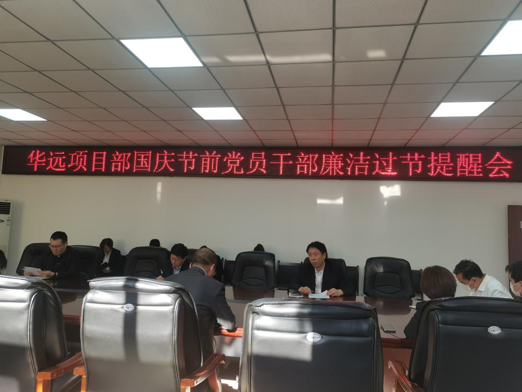 國慶假期將至,華遠(yuǎn)項(xiàng)目部召開國慶節(jié)前黨員干部廉潔過節(jié)提醒會(huì),為全體黨員干部送上了一份“廉禮”。
