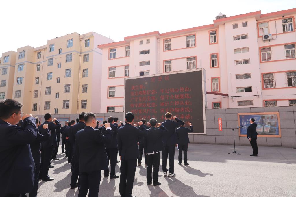 我鄭重宣誓:“堅定理想信念,牢記初心使命;嚴(yán)守黨紀(jì)黨規(guī),堅守合規(guī)底線……團結(jié)協(xié)作奮進,爭創(chuàng)一流業(yè)績!”在莊嚴(yán)肅穆的氛圍中,聲聲鏗鏘誓言縈繞于耳,宣誓人員將紀(jì)律規(guī)矩意識、廉潔自律意識熔鑄于心。