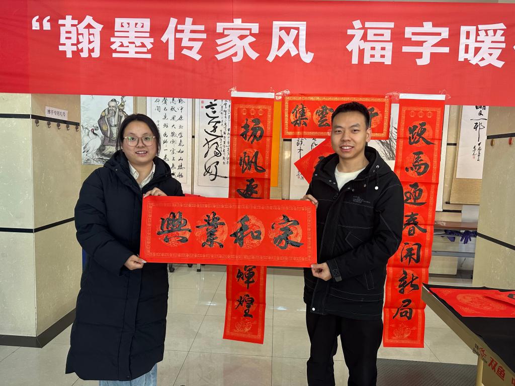 聞訊而來的青工絡繹不絕,圍聚在書桌旁,一邊欣賞青年志愿者們的書法風采,一邊輕聲討論著心儀的春聯(lián)內(nèi)容,現(xiàn)場歡聲笑語不斷。大家有序排隊,有的挑選貼合家庭的吉祥春聯(lián),有的請志愿者定制專屬祝福,拿到春聯(lián)的職工臉上都洋溢著幸福的笑容,小心翼翼地將墨跡未干的春聯(lián)疊好,不住地為團員青年的貼心服務點贊。志愿者們還主動幫忙晾曬春聯(lián)、講解春聯(lián)寓意,忙碌的身影與紅彤彤的春聯(lián)相映成趣,成為礦區(qū)里最亮眼的風景。