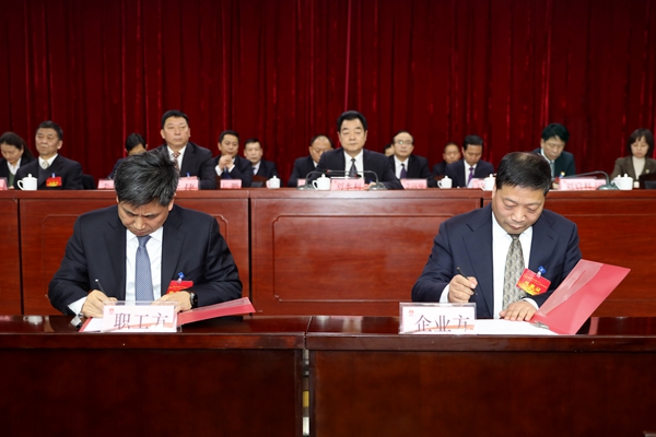 會上,企業(yè)方代表與職工方代表簽訂了公司2020年度《工資集體合同》,表決通過了大會有關(guān)決議,通報了民主評議公司領(lǐng)導班子和領(lǐng)導人員結(jié)果情況。