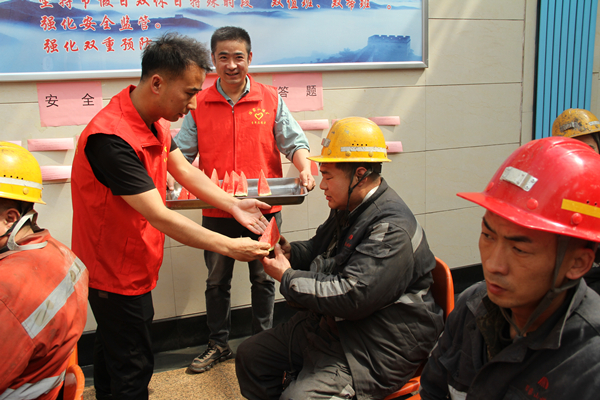 為了豐富職工文化生活,保障職工全身心投入到安全生產(chǎn)工作中,確保安全生產(chǎn)月活動(dòng)取得實(shí)效。6月14日下午,陳家山礦在井口人車場(chǎng)組織開展了“心手相牽 共享安全”志愿服務(wù)活動(dòng),向高溫天氣堅(jiān)守在一線的職工送去清涼關(guān)懷與關(guān)愛。